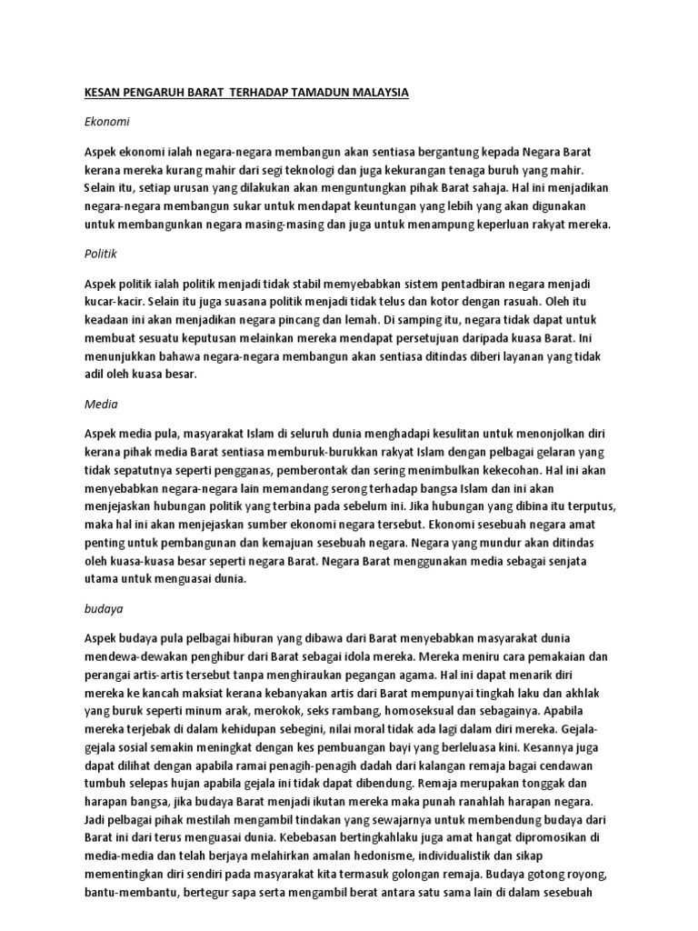Kesan Pengaruh Barat Dan Melayu Terhadap Tamadun Malaysia Pdf